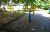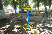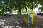 Спортивний майданчик складається з різноманітних тренажерів, серед яких є орбітрек, повітряний ходок, велотренажер та інші. Також тут розміщений дитячий спортивно-гімнастичний комплекс, гойдалка для чотирьох та гойдалка для візочників.