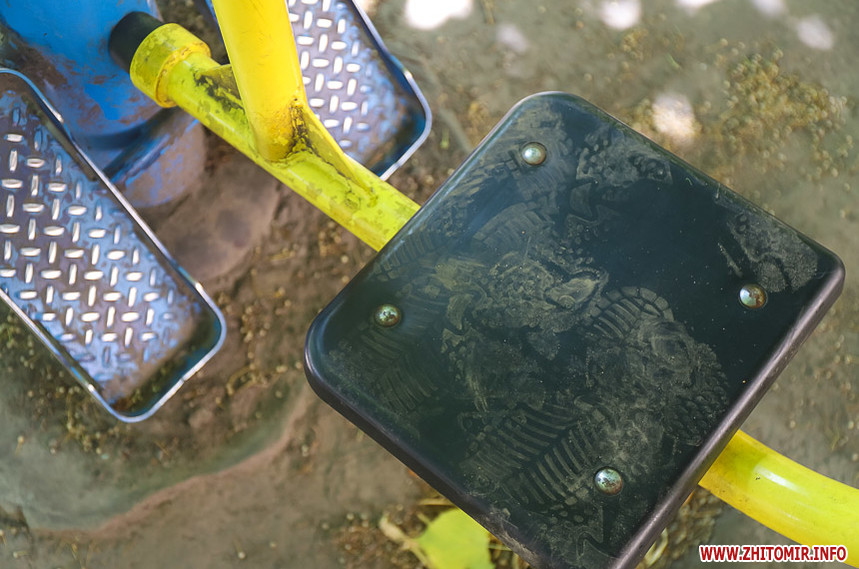 Зараз майданчик містить сліди експлуатації: на тренажерах облущилася фарба, деякі деталі погнуті, на гойдалці для візочників відірваний один з елементів. На тренажерах ще збереглися наліпки з інструкціями по використанню. Люди у дворі скаржаться, що тренажери ніхто не змащує і коли зранку хтось на них займається, то вони сильно скриплять і заважають.
