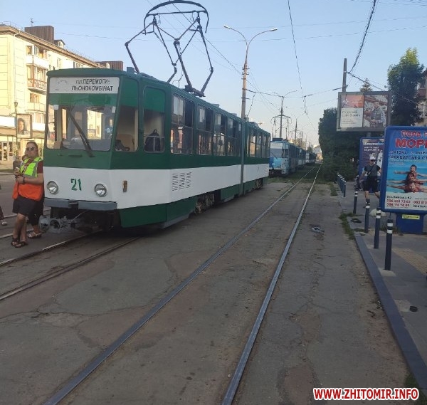 Ввечері 28 липня на перехресті вулиць Київської та Небесної сотні у Житомирі зіткнулися два автомобілі. ДТП трапилася просто на трамвайних коліях, таким чином рух трамваїв заблокований.