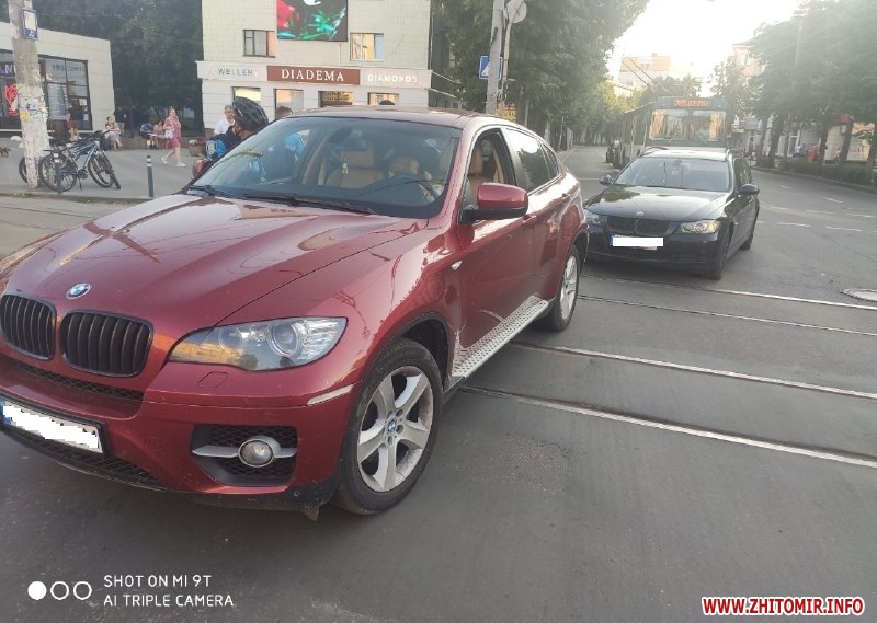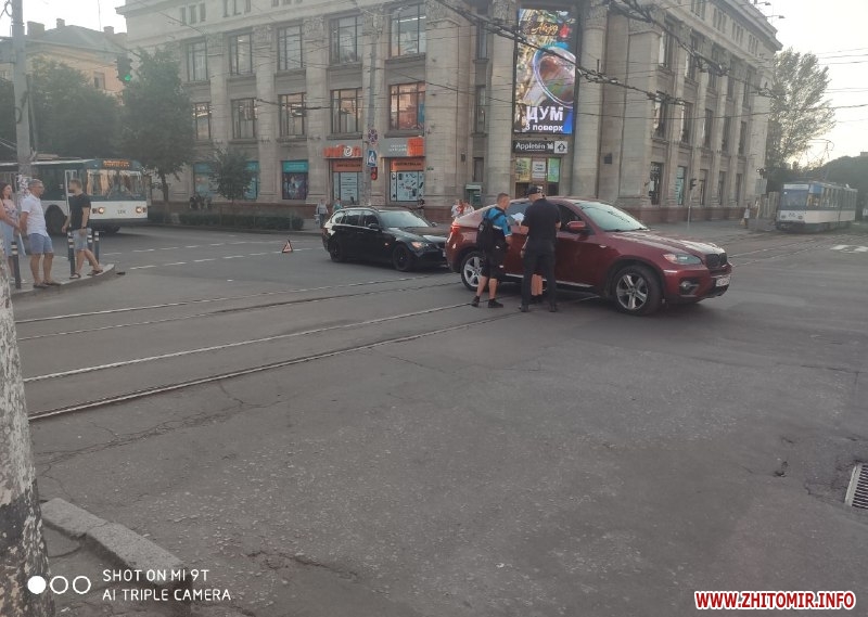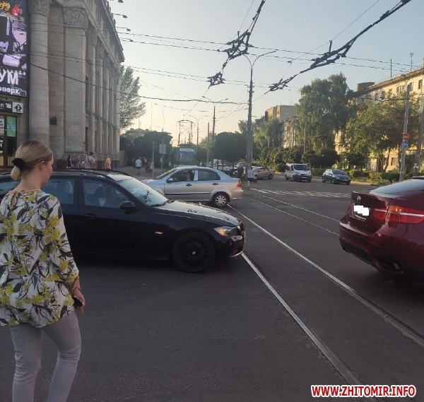У пресслужбі патрульної поліції Житомирської області Житомир.info уточнили, що виклик про зіткнення двох автомобілів BMW на вказаному перехресті надійшов о 18:40 год. У дорожньо-транспортній пригоді ніхто не постраждав. Рух трамваїв перекритий.