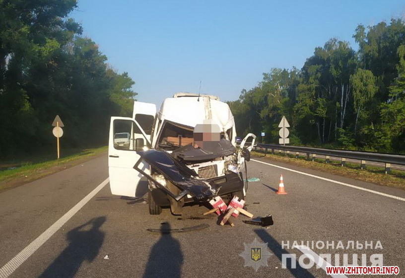 Вранці 30 липня у Житомирському районі пасажирський мікроавтобус зіткнувся з вантажівкою. Водій маршрутки травмувався, пасажири не постраждали.