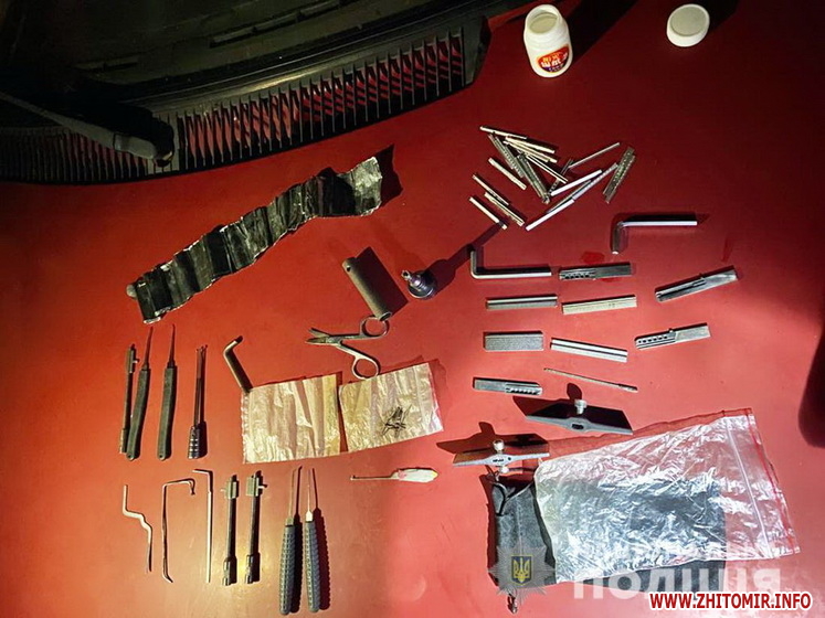 «В одного з них, 33-річного містянина, ми вилучили речі, що належать потерпілій, а згодом під час обшуку авто також знайшли і ювелірні вироби та набір специфічного інструменту для відкриття замків», – продовжив начальник Житомирського РУП.