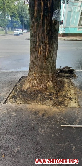 У Житомирі на вулиці Святослава Ріхтера розчистили закатані в асфальт дерева.