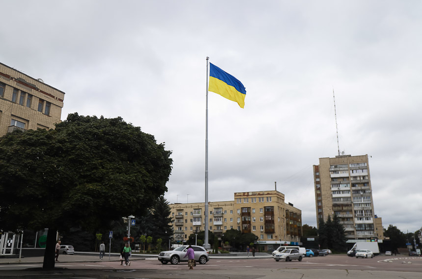 16 червня розпочали реконструкцію скверу, 9 серпня почали встановлювати флагшток, а 20 серпня у тестовому режимі підняли Державний прапор розміром 14х8 метрів. 23 серпня український стяг підняли над майданом Соборним в урочистій обстановці.