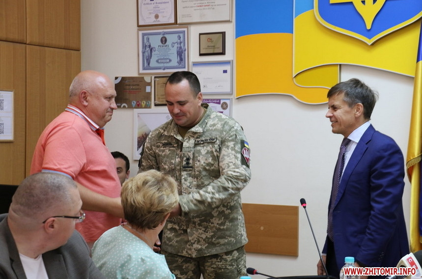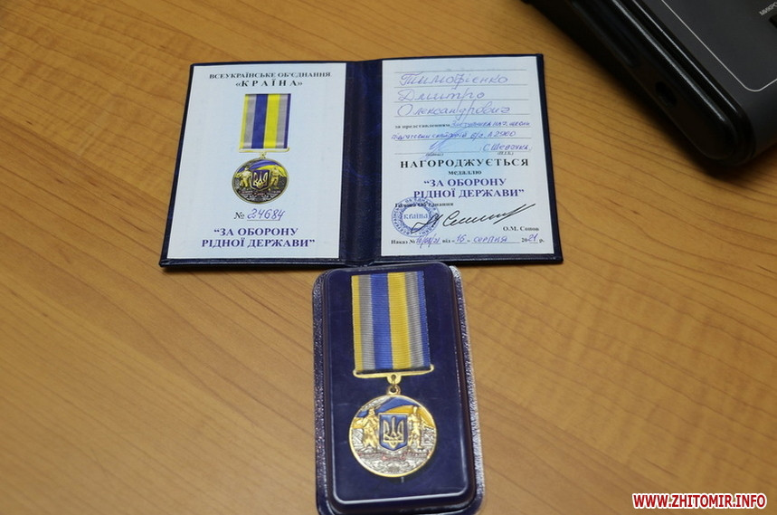 1 вересня під час засідання виконкому Житомирської міськради начальник школи снайперів 199 навчального центру підполковник Олексій Джемула вручив медаль "За оборону рідної держави" Дмитру Тимофієнку, який готує снайперів.