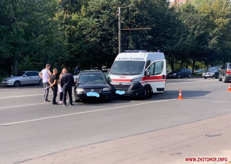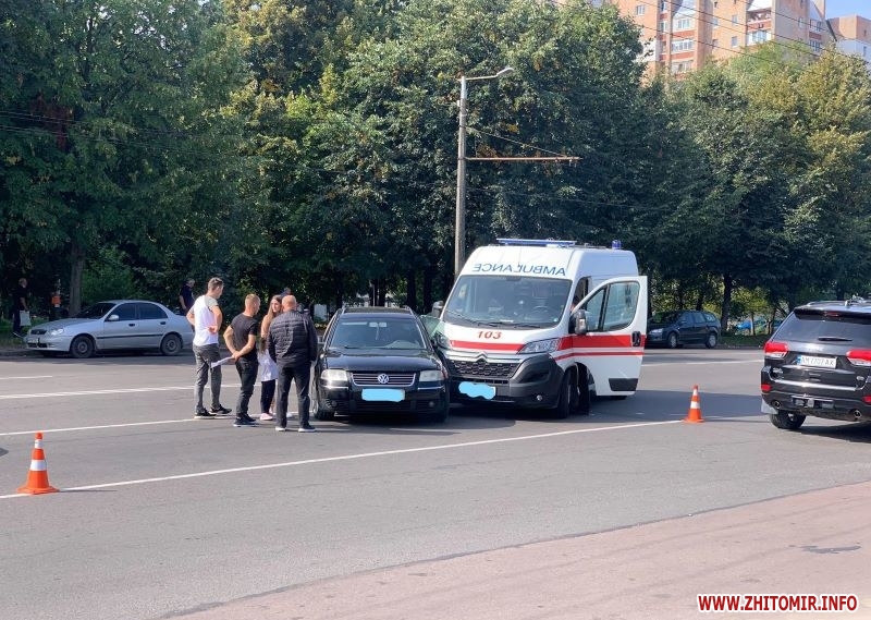 11 вересня на проспекті Миру в Житомирі сталася дорожньо-транспортна пригода за участі автомобіля швидкої медичної допомоги.