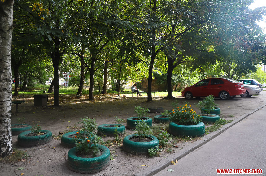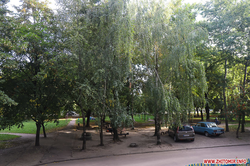 У дворі багато високих молодих дерев. Одна з місцевих мешканок розповідає, що дерева дуже допомагають сховатися від літньої спеки матусям з дітьми. Згадує, як будучи дитиною і допомагала садити ці дерева, тож хвилюється за їхню долю.