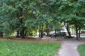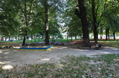 Лавки тут на будь-який смак – старі й нові, поламані та відновлені. З самісінького ранку у теплу пору року тут ажіотаж – хтось просто відпочиває, а хтось релаксує, читаючи книгу. Дитячий майданчик тут старий, проте пісочниця чиста, гойдалки та гірки доглянуті.