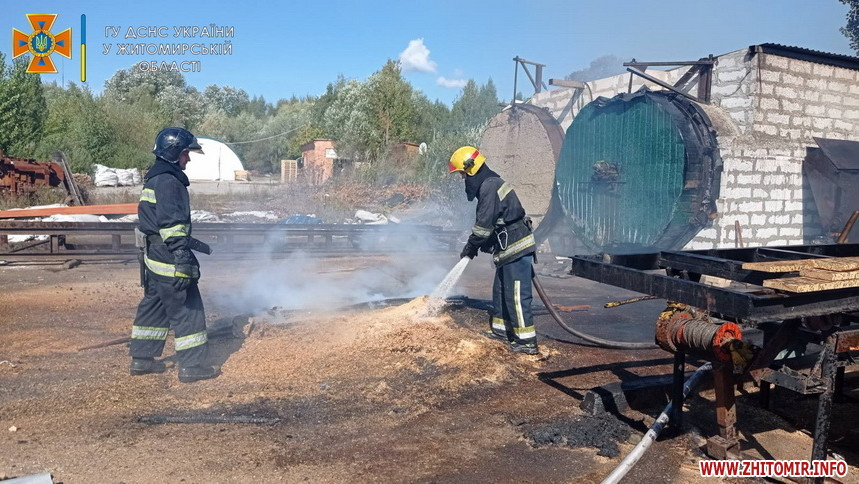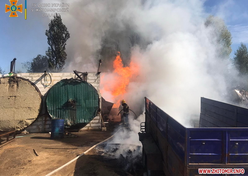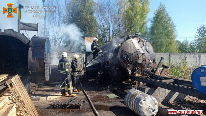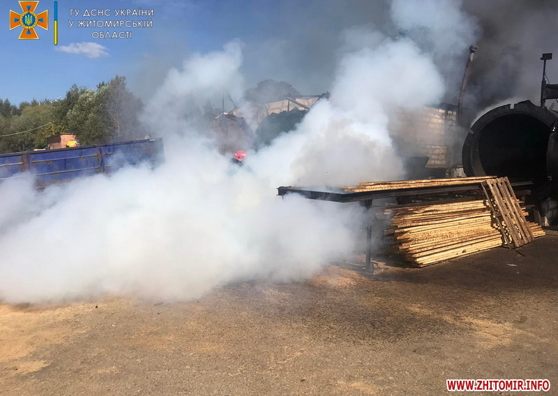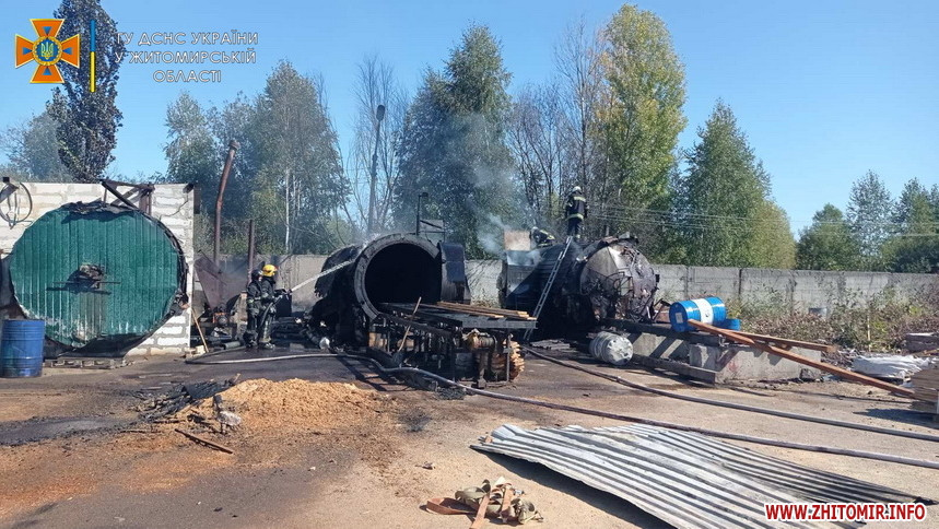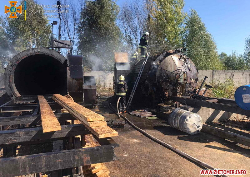 «16 вересня об 11:46 до Служби порятунку «101» надійшло повідомлення про пожежу на відкритій території одного з підприємств м. Житомира, де зайнялися сушильні камери для деревини. На місці події бійці ДСНС з’ясували, що, попередньо, через вибух 200-літрової бочки із легкозаймистою речовиною сталося загоряння двох металевих сушильних камер та деревини, що знаходилася поруч. Внаслідок чого отримали опіки різного ступеню важкості троє осіб. Прибулі за викликом медики госпіталізували потерпілих до лікувальних закладів обласного центру», - йдеться у повідомленні.