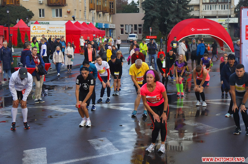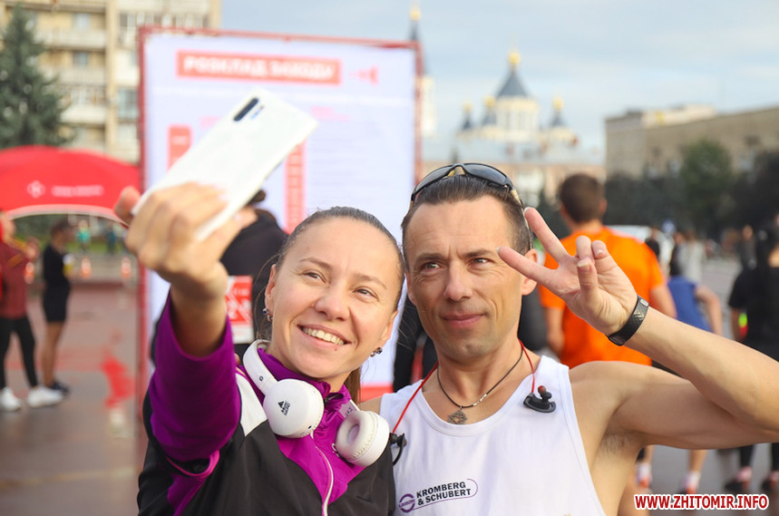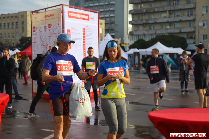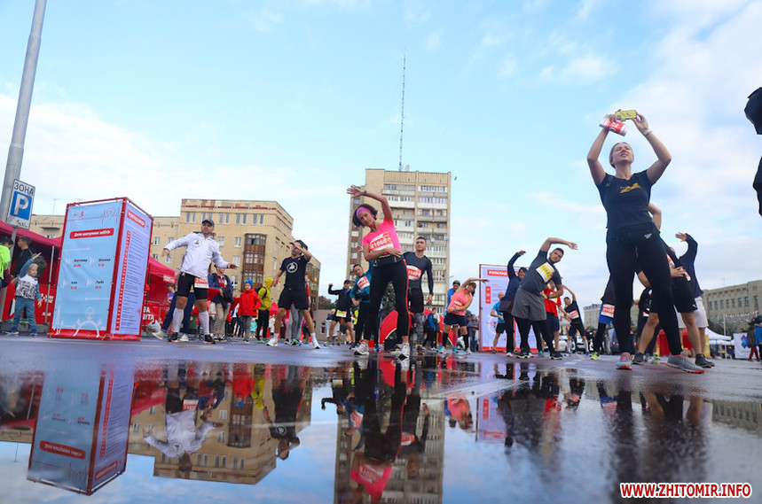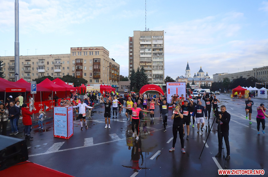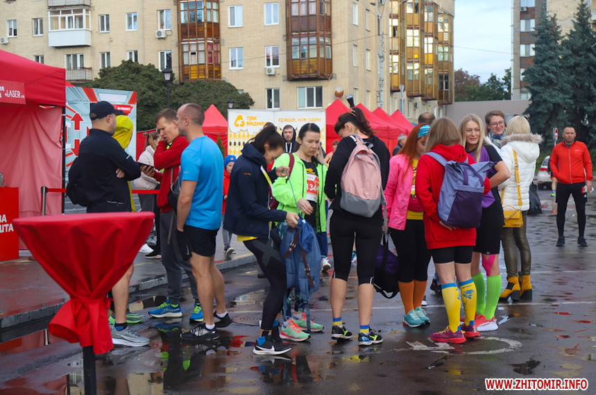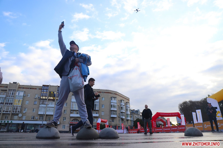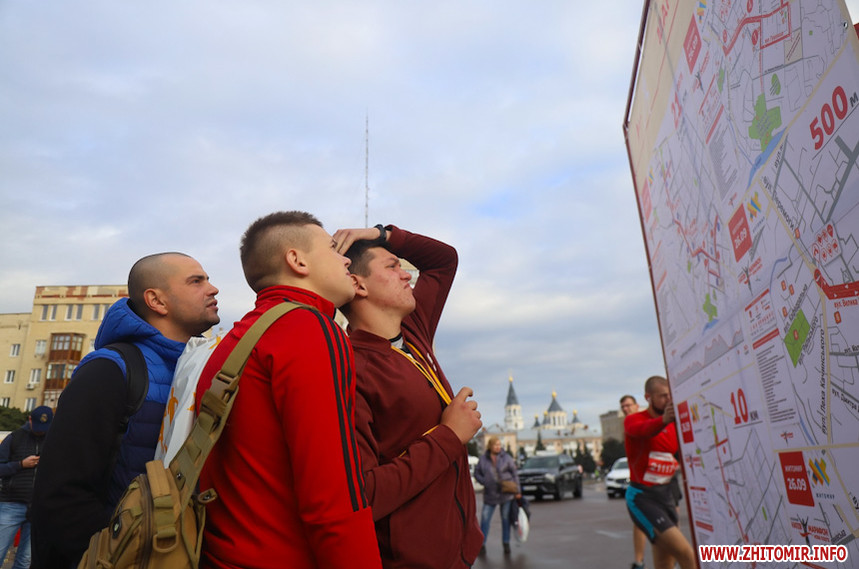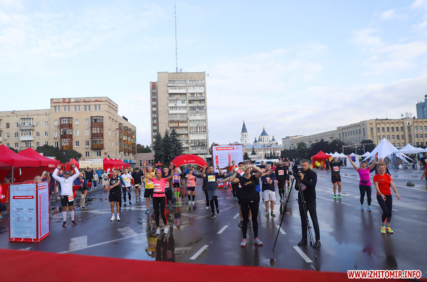 На майдані Соборному в Житомирі зранку, 26 вересня, стартували бігуни на найдовшу дистанцію Космомарафону – 21 км. Таких зареєструвалося 220.