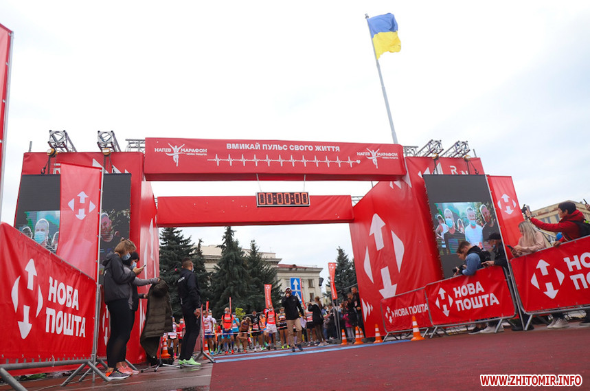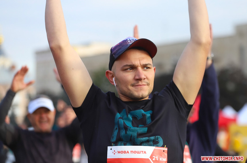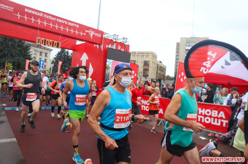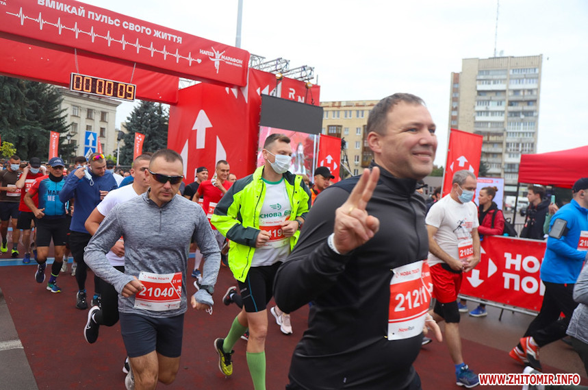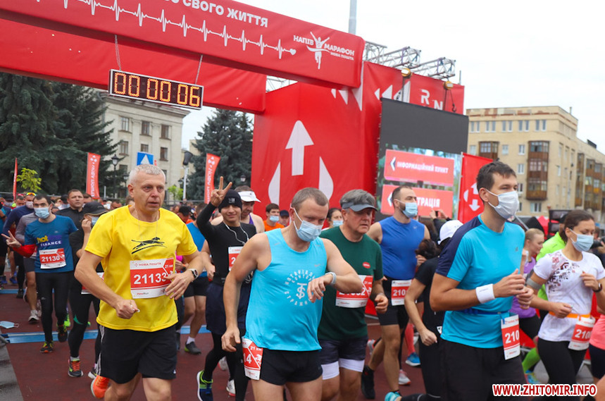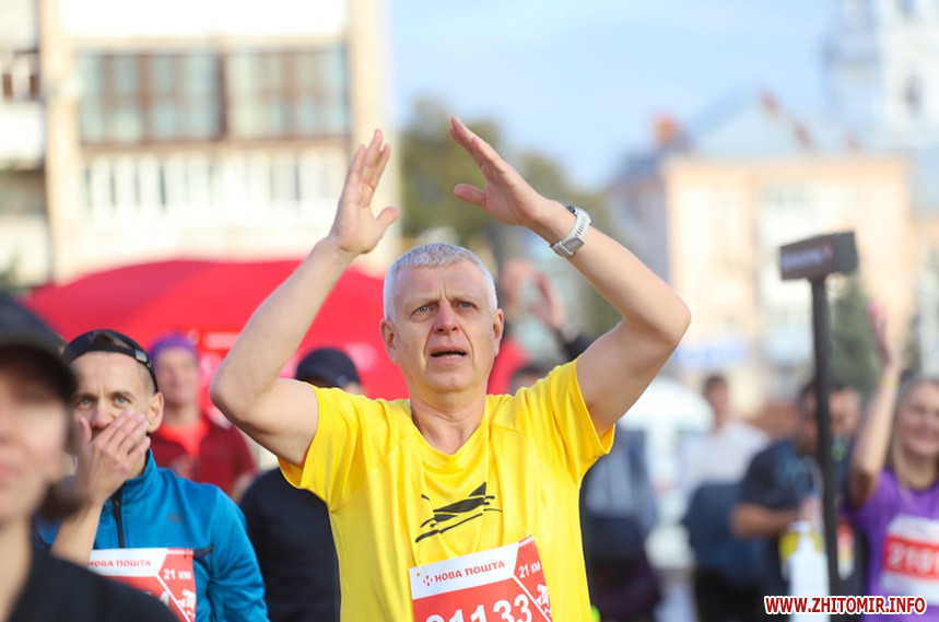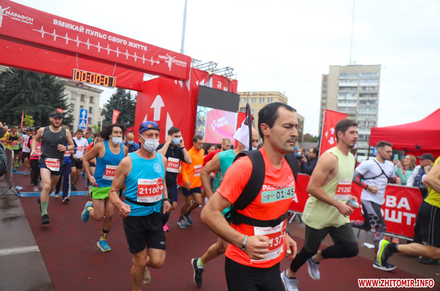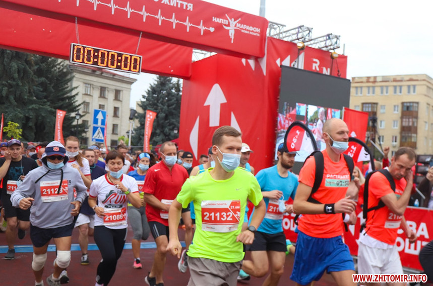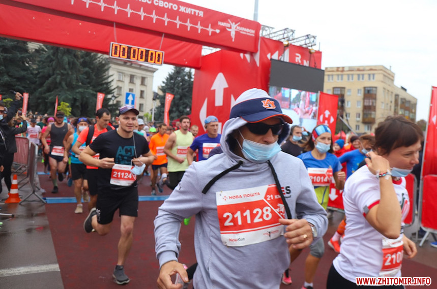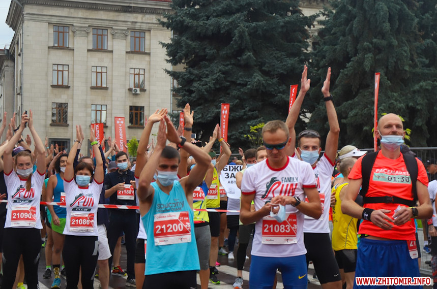 На майдані Соборному в Житомирі зранку, 26 вересня, стартували бігуни на найдовшу дистанцію Космомарафону – 21 км. Таких зареєструвалося 220.