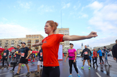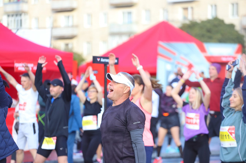 Перед початком всіх забігів марафонці провели розминку біля головної сцени змагань.