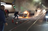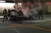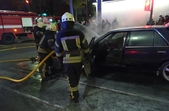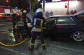 За його словами, пожежа сталася близько 20.00. Схоже, автомобіль загорівся під час руху, адже стояв посеред проїжджої частини, біля трамвайних колій, поряд з пішохідним переходом.