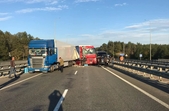 Одна з фур перевозила продукти харчування, які розсипались на проїжджій частині дороги.