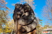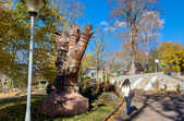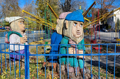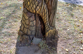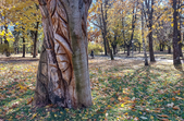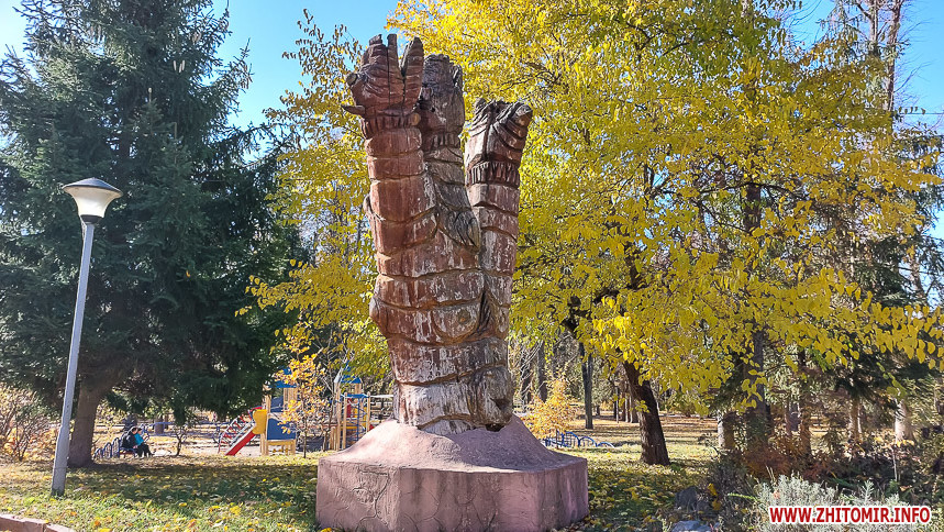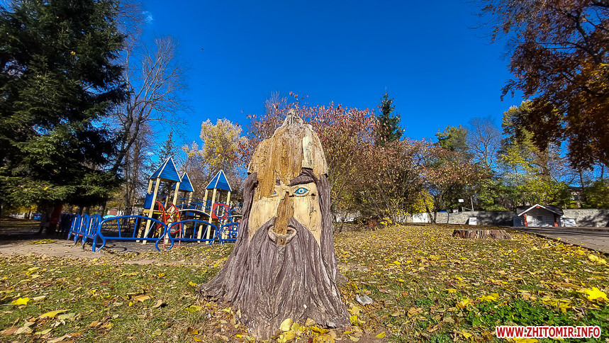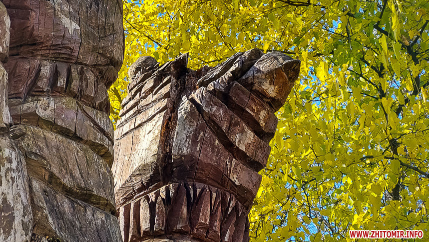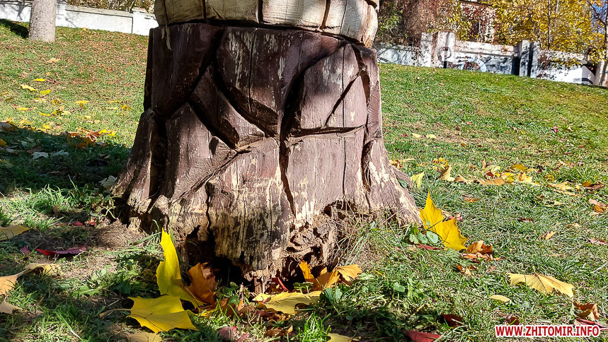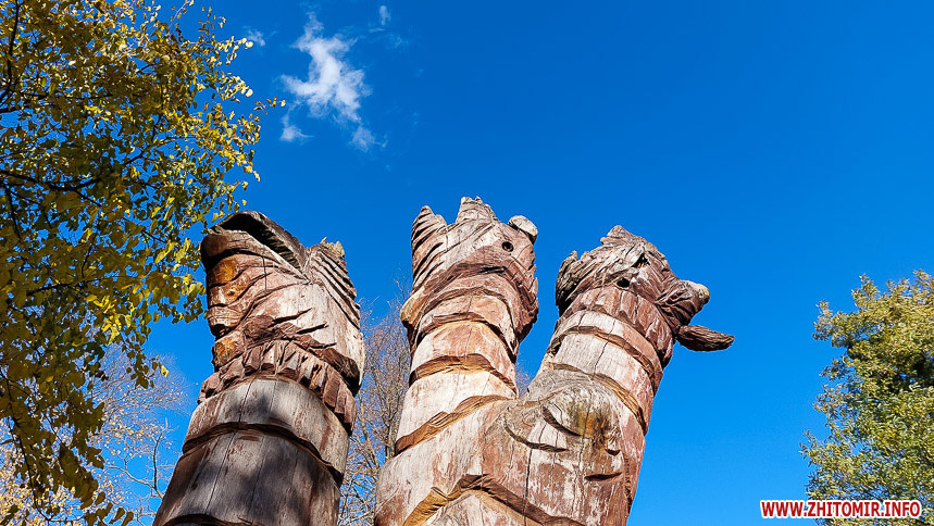 Потріскані, з облущеною фарбою, трухлявими основами - який вигляд мають дерев’яні скульптури у парку дивіться у слайдері.