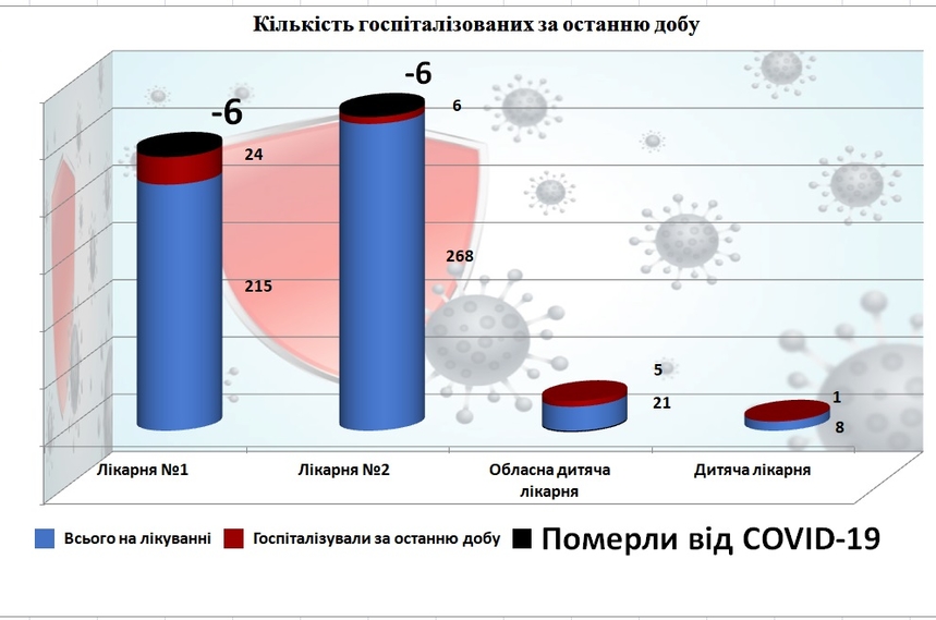 «На базі КП «Дитяча лікарня імені В.Й. Башека» Житомирської міської ради з 23 жовтня розгорнули відділення для госпіталізації хворих на COVID-19 дітей. Потужність ковідного інфекційного відділення – 40 ліжок. За останню добу сюди госпіталізували одну дитину. На сьогодні тут знаходиться восьмеро дітей, хворих на COVID-19. За останню добу до житомирських лікарень госпіталізували 30 осіб з ковід. До Лікарні №1 – 24, до Лікарні №2 – 6 осіб. Станом на сьогоднішній ранок на стаціонарному лікуванні у міських лікарнях знаходиться 483 людини. У Лікарні №1 – 215 пацієнтів, у Лікарні №2 – 268. За добу померло 12 осіб», - йдеться у повідомленні.