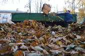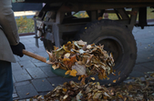 Після того, як листя зібрали, його вантажать на трактори та вивозять. Частину зібраного листя везуть на сміттєзвалище. А те листя, що зібрали далеко від доріг та проїжджих частин, привозять на територію КП “Зеленбуд”. Тут його компостують та використовують у приготуванні ґрунтосуміші.