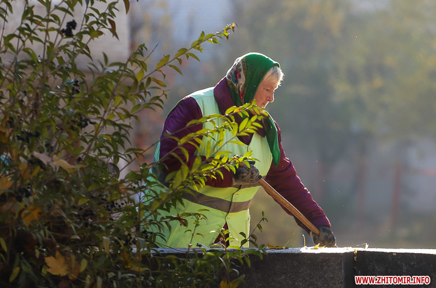 “Бачите, ось тут я щойно замела, а воно знов нападало. А коли вітер… Ну нічого, це наша робота, за це нам гроші платять. На “Зеленбуді” я працюю вже 16-ий рік. Моя посада називається “Озеленювач”. Мені подобається ця робота. Люблю я її. Люблю прибирати, садити дерева та квіти, робити місто кращим”, - розповідає працівниця КП “Зеленбуд” Галина Скачкова.