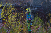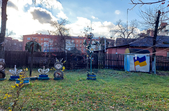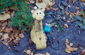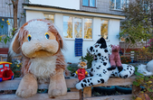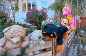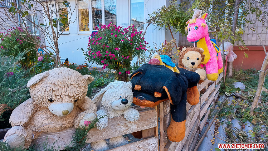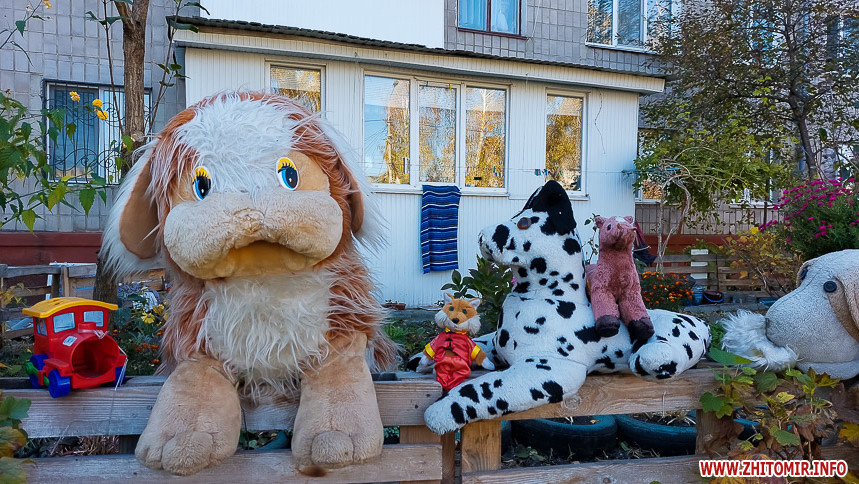 Біля будинку по Хлібній, 5 огорожу величезного квітника прикрасили різноманітними м’якими іграшками - і сучасними, і старими радянськими.