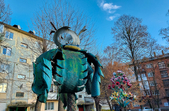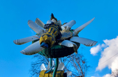 У дворі біля багатоповерхівки на Івана Мазепи, 89 можна знайти лебедів та інших тварин з шин і яскравий жовто-блакитний малюнок прапора на стіні.