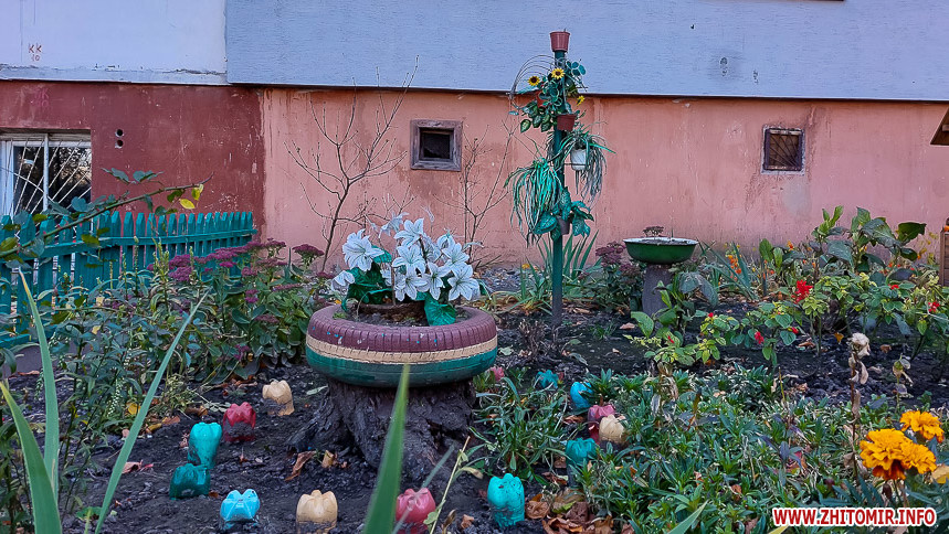Пальми та квіти з шин, декор з пластикових пляшок, м’які іграшки та креативні малюнки на стінах житлових будинків - все це можна знайти просто зазирнувши у житомирські двори.