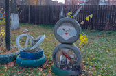 Хтось встановив пальму у пісочниці або поряд з будинком, хтось прикріпив величезного бедрика на березі, а інші “змагаються” у вирізанні лебедів з автомобільних шин.