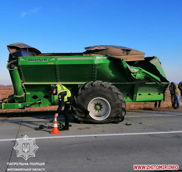 7 листопада на трасі Київ-Ковель Ягодин в Житомирській області вантажівка в’їхала в причіп трактора: водія госпіталізували.