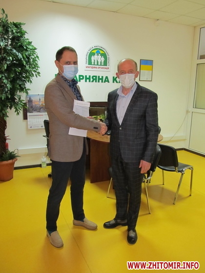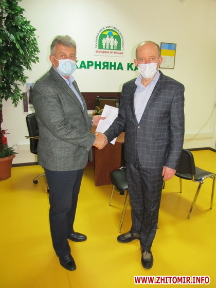 У листопаді 2021 року благодійна організація «Лікарняна каса Житомирської області» передала закладам охорони здоров’я в якості благодійної допомоги 15 потужних кисневих концентраторів загальною вартістю майже 800 тис. грн та 3 500 швидких тестів для виявлення антигену коронавірусу. Загальна сума допомоги становить понад 1 млн грн.