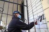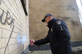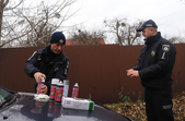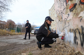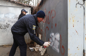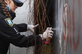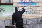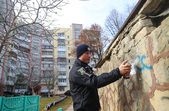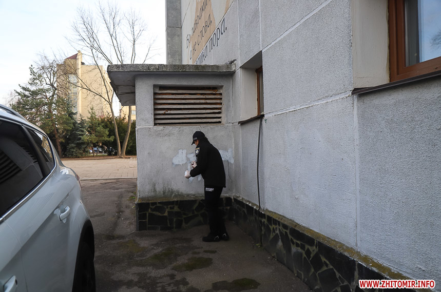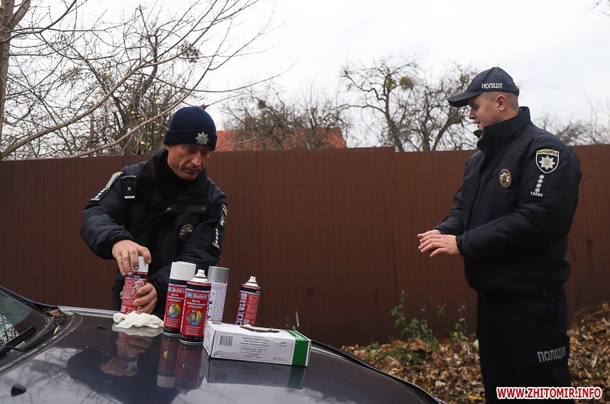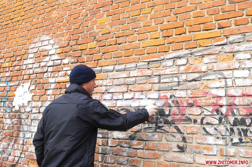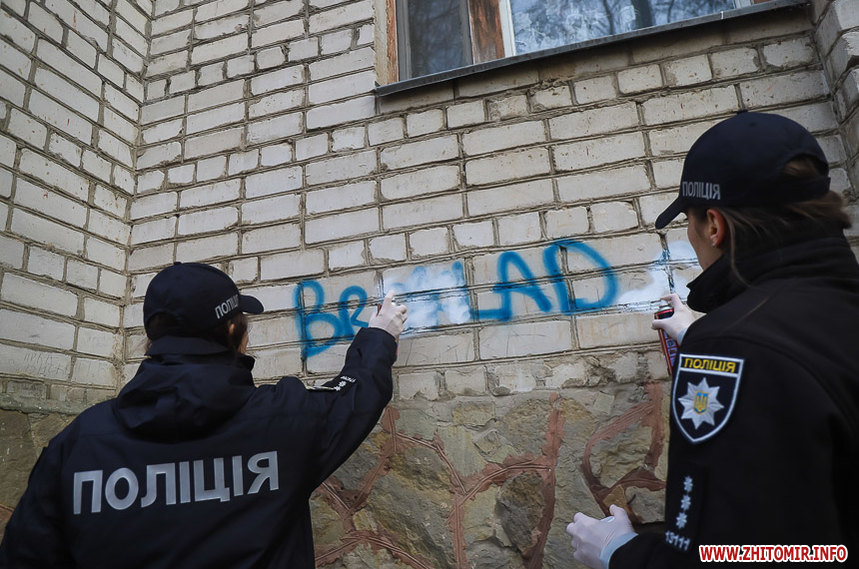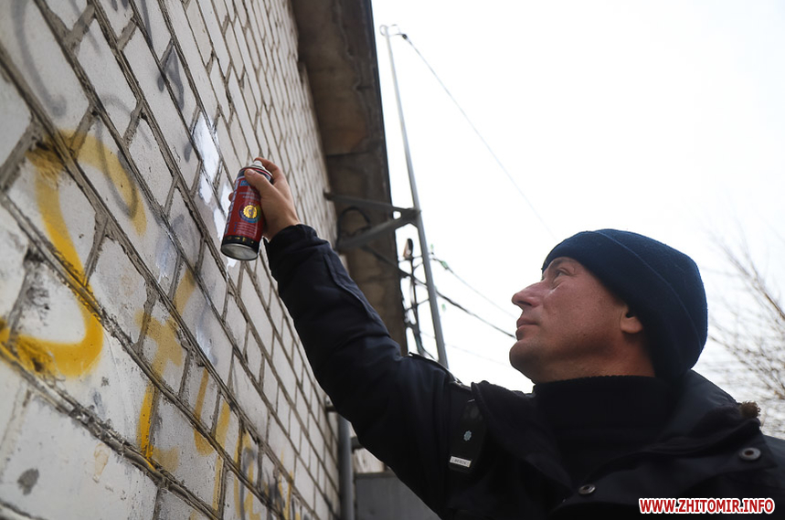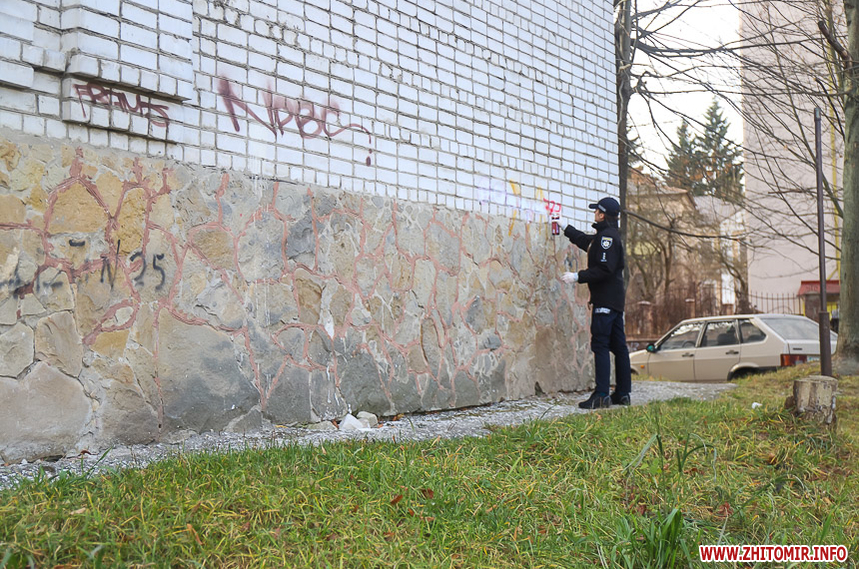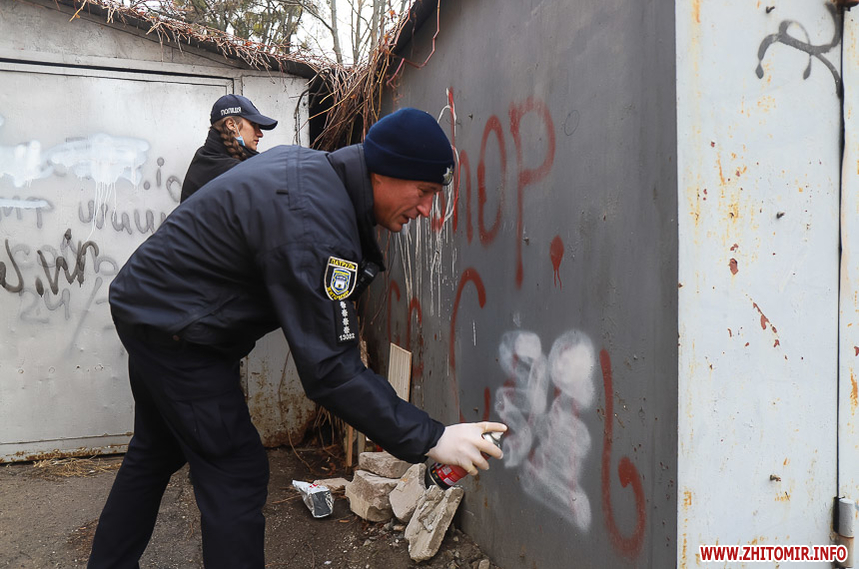 23 листопада поліцейські з сектору зв’язків з громадськістю та пресслужби патрульної поліції Житомирської області, «озброївшись» балончиками з фарбою та гумовими рукавичками, влаштували чергову акцію з зафарбовування біля навчальних закладів у центрі міста. Під час акції до правоохоронців неодноразово підходять місцеві жителі і показують написи.