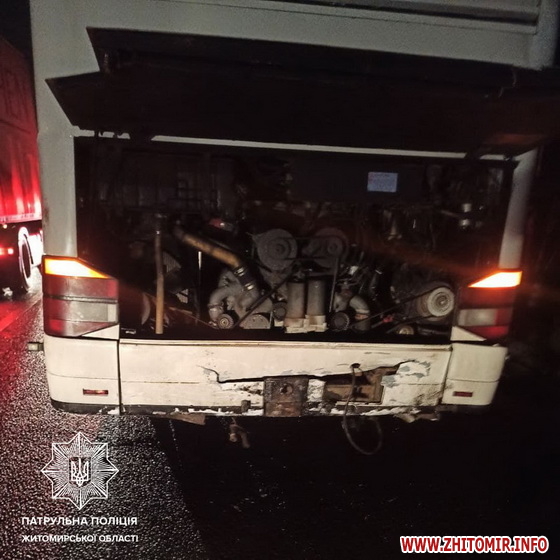 «Вчора (23 листопада), близько 21-ї години, інспекторам патрульної поліції надійшло повідомлення, що на автодорозі Т0614 Глибочиця — Станишівка (об'їзна Житомира) сталася дорожньо-транспортна пригода з потерпілими за участю автомобіля Mercedes та автобуса SETRA», – йдеться у повідомленні.
