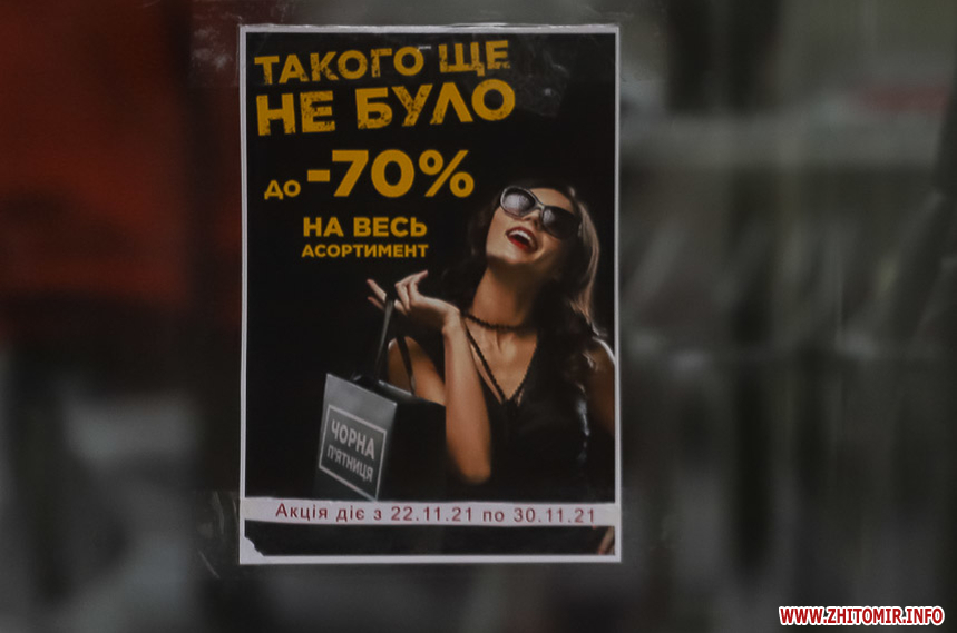 Кілька років поспіль Житомир не обходить стороною традиція влаштовувати святкові розпродажі наприкінці року. Ця традиція народилася в Америці у 50-х роках минулого сторіччя і нині популярна у всьому світі. День великого розпродажу називають Black Friday, або ж «чорна п’ятниця».