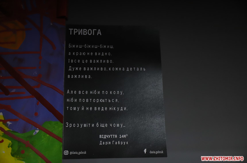 У Житомирі у Місцевому навколокультурному просторі 3 грудня о 19:00 відкриють персональну виставку житомирської мисткині Дар’ї Габрук “Відчуття 14 м2”.