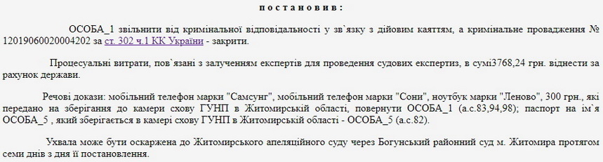 Ухвалу щодо вказаної кримінальної справи Богунський районний суд м. Житомира виніс 26 листопада 2021 року. У Єдиному державному реєстрі судових рішень ухвалу оприлюднили 1 грудня.
