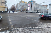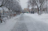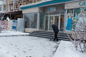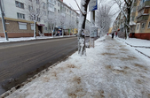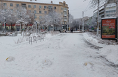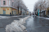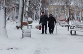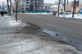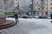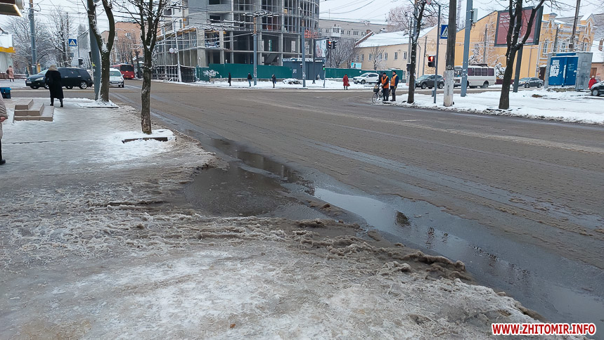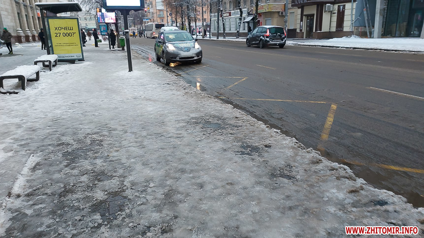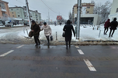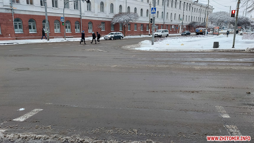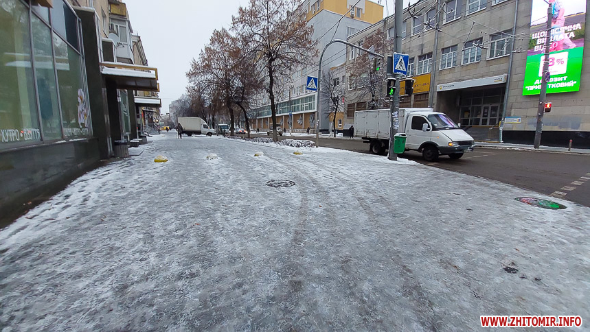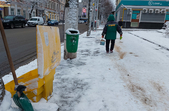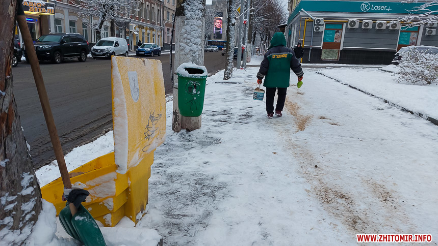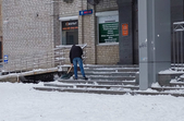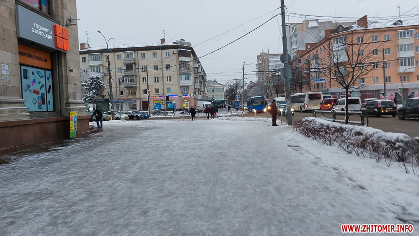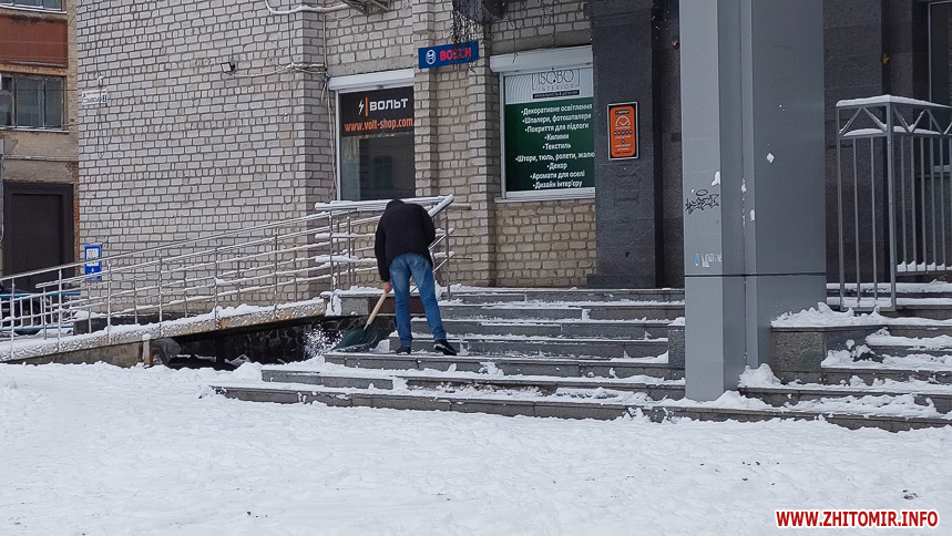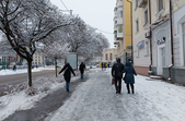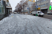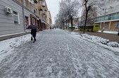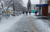 А от у центрі хоч сніг був і розчищений, проте ранковий дощ перетворив деякі частини вулиць на справжній каток. Місцеві підприємці, працівники магазинів, аптек та інших закладів зранку розчищали та посипали сіллю і піском входи до своїх приміщень.