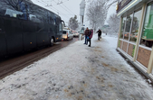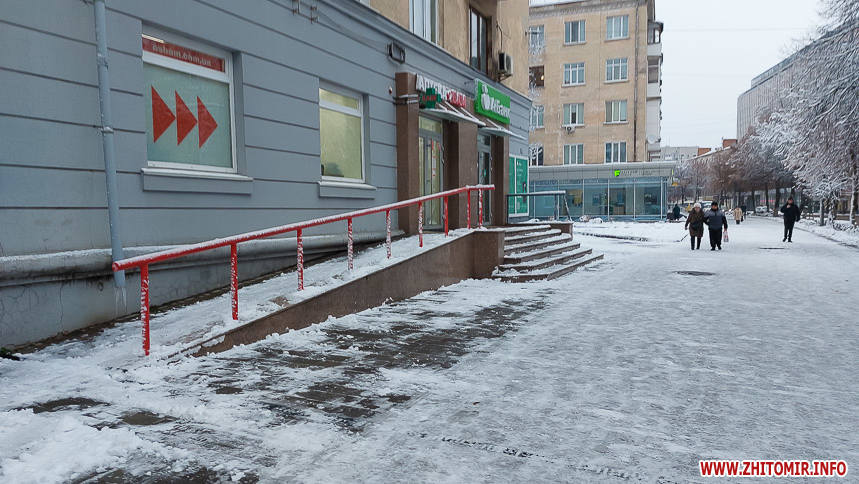 На жаль, погодні умови повністю паралізували інфраструктуру для людей з інвалідністю - зранку 8 грудня пандуси у більшості громадських закладів були або не розчищені, або вкриті шаром льоді через дощ. Тактильна плитка також вкрита льодом, а боларди у снігу практично не видно, що створює небезпеку для перехожих.