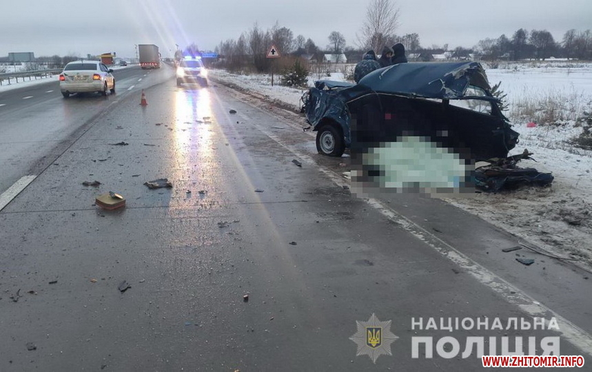 У Коростенському районі Житомирської області 8 грудня в ДТП потрапило подружжя, яке їхало автомобілем ВАЗ: легковик зіткнувся з вантажівкою. У результаті водій отримав тілесні ушкодження, а його дружина загинула на місці події.