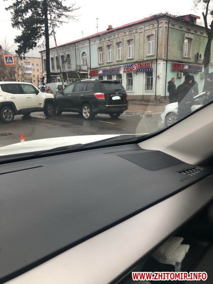 Вранці 14 грудня на вулиці Жуйка у Житомирі сталася дорожньо-транспортна пригода: зіткнулися два позашляховики.