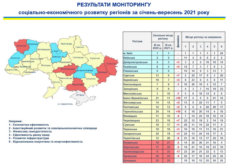 Нагадаємо, за результатами І кварталу 2021 року область посідала 5 місце, за підсумками ІІ кварталу 2021 року була на 8 місці.