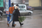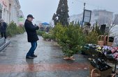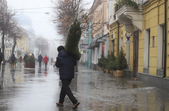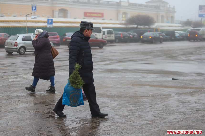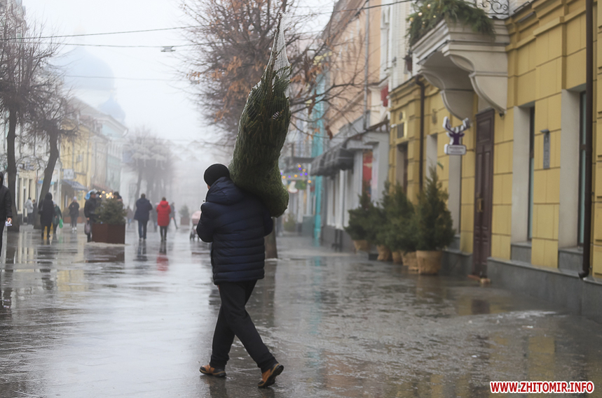 Хоча погода видалася не зимова: з самісінького ранку 31 грудня місто оповив густий туман, проте містяни самі створюють собі святковий настрій - несуть додому ялинки та мандарини. Плюсова температура навіть до вподоби молоді - перехожі дівчата жартують, що хоча сніг і розтанув, проте вони вже точно не зіпсують зачіски шапками.