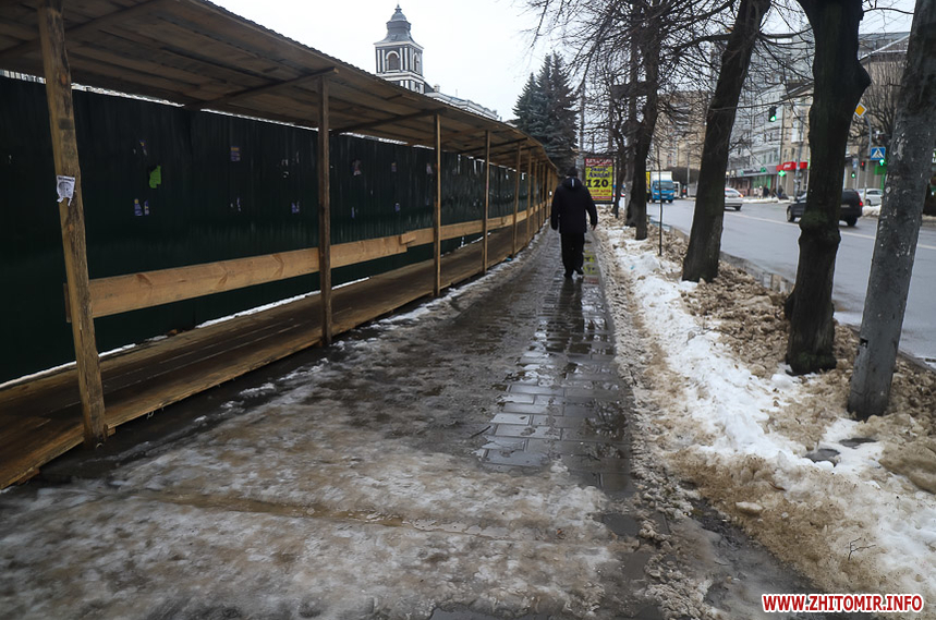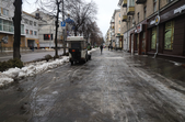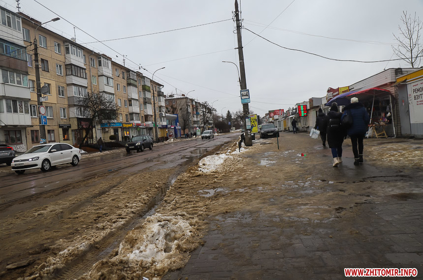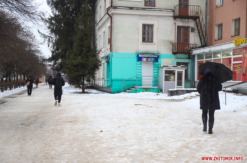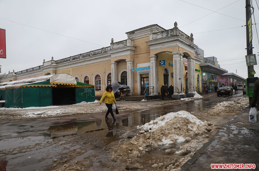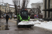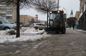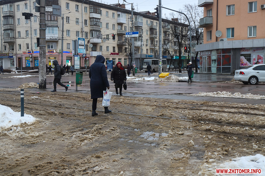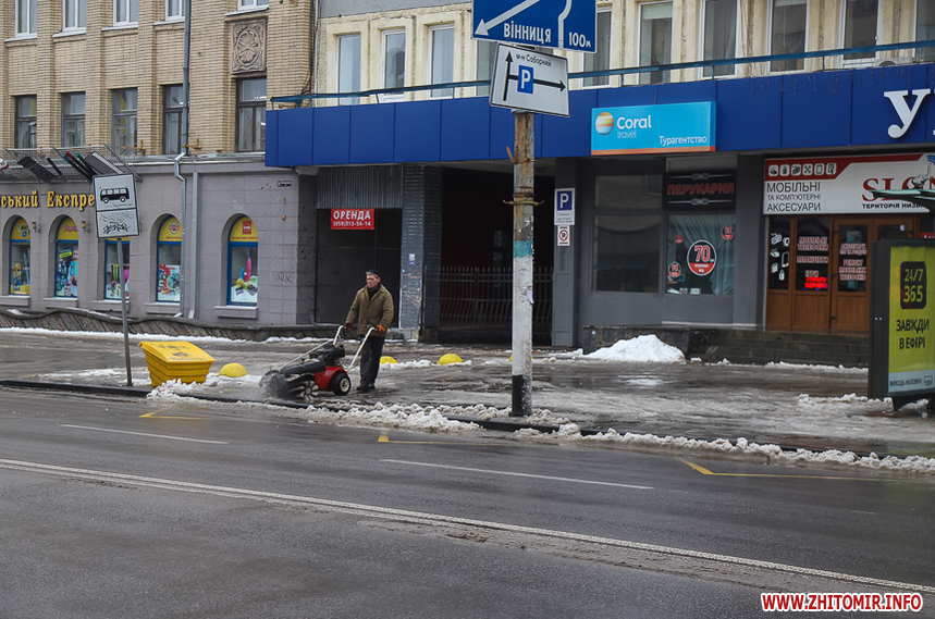Після кількаденних нічних морозів у 16-18 градусів з 13 на 14 січня в Житомирі розпочалася відлига. З самого ранку на центральних вулицях комунальники розчищають та вивозять сніг.