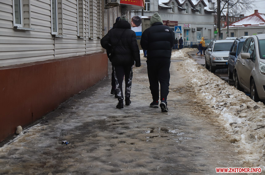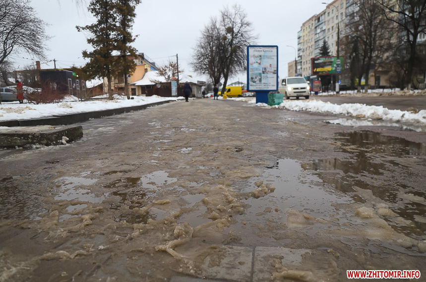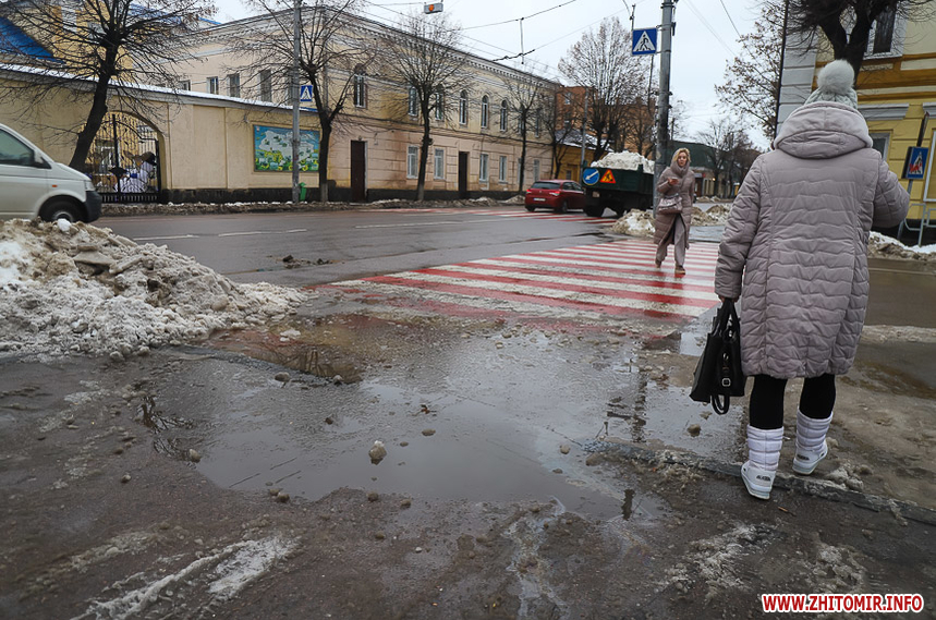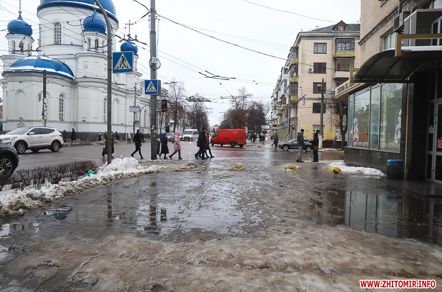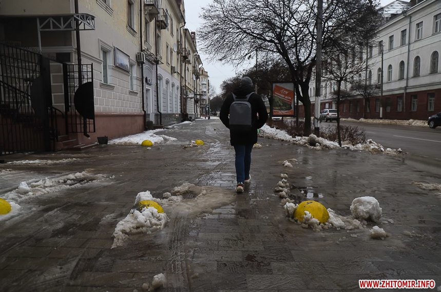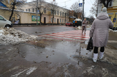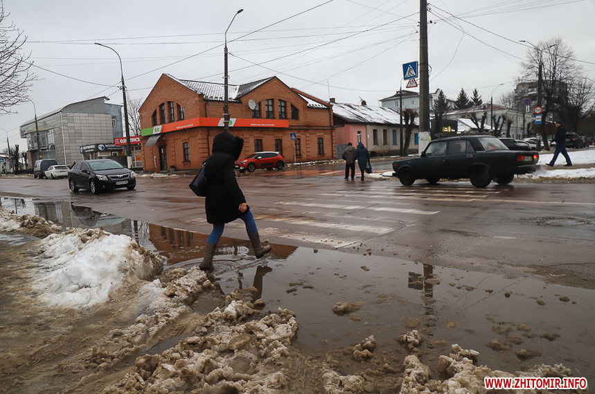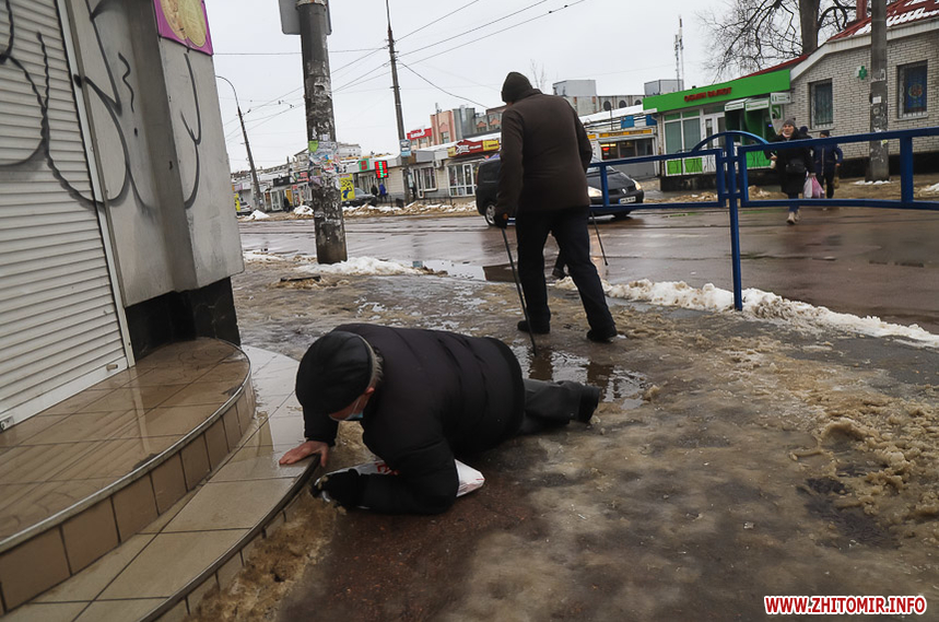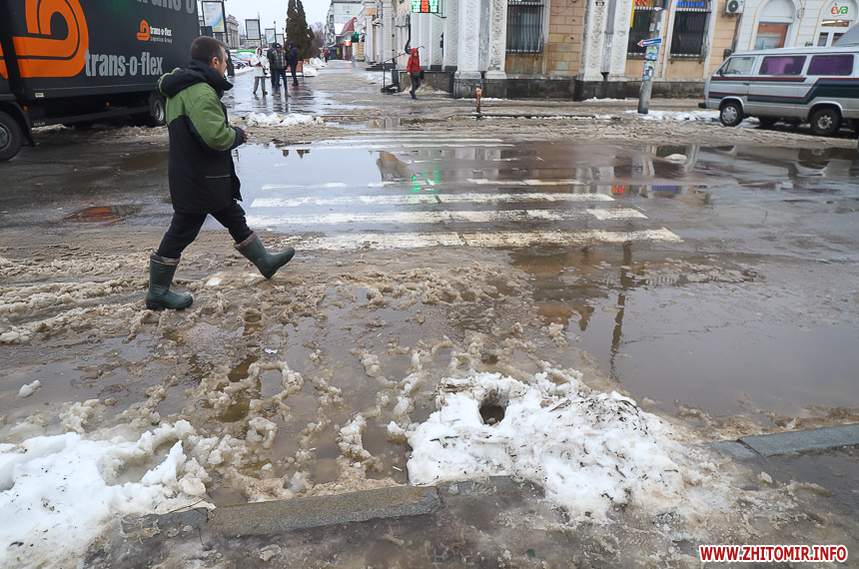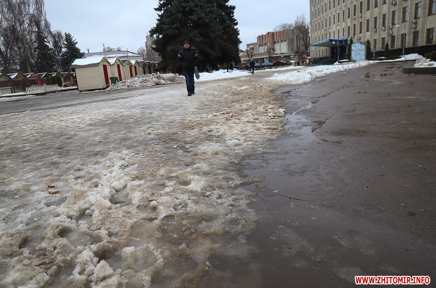 Проте це не дуже допомагає – через швидке танення снігу на тротуарах утворилися величезні калюжі та снігова «каша», під якою місцями є залишки льоду. Намагаючись обійти калюжі, щоб не намочити ноги, люди стають на безпечну, на перший погляд, снігову кашу та падають.