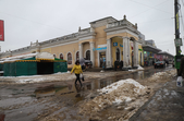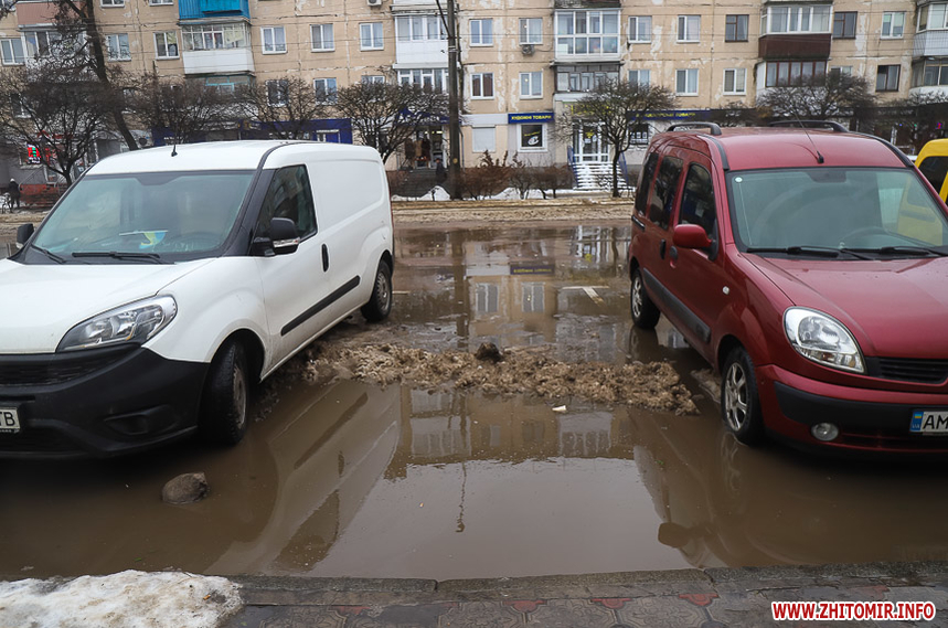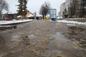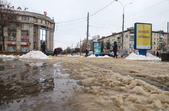 Через забиті снігом зливостоки на вулицях з новою плиткою стоять калюжі.