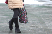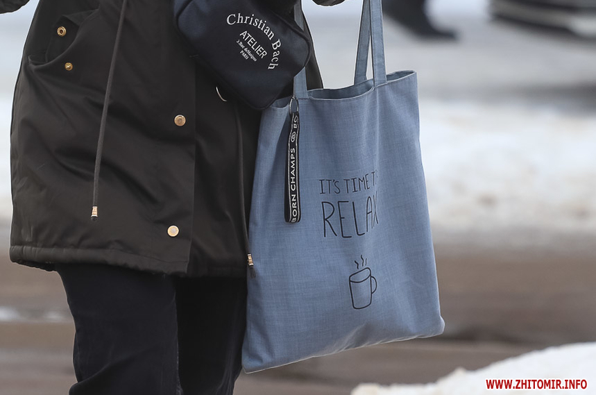 Наша фотокореспондентка в обідню пору в районі Житнього ринку “полювала” на житомирян, щоб подивитися, чи багато людей перейшло на більш екологічну альтернативу пакетам.