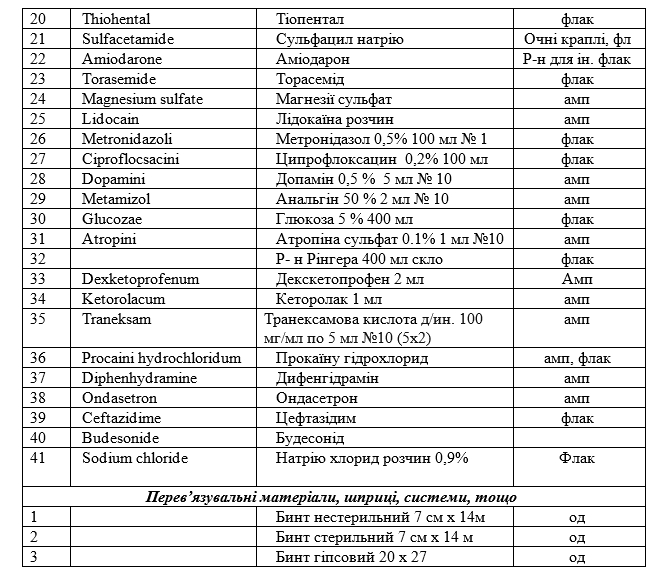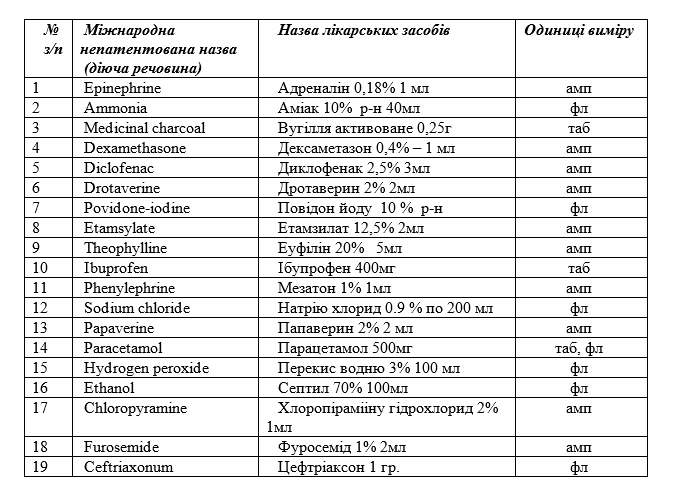 Орієнтовний перелік лікарських засобів та медичних виробів