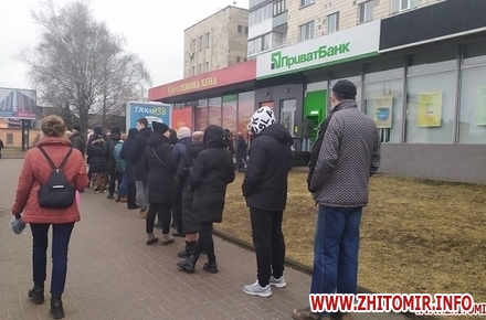 Як повідомляв Житомир.info, 24 лютого 2022 року, у перший день повномасштабного вторгнення російських окупантів на територію України, в Житомирі люди вишиковувалися в черги до банкоматів, щоби зняти готівку.