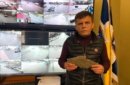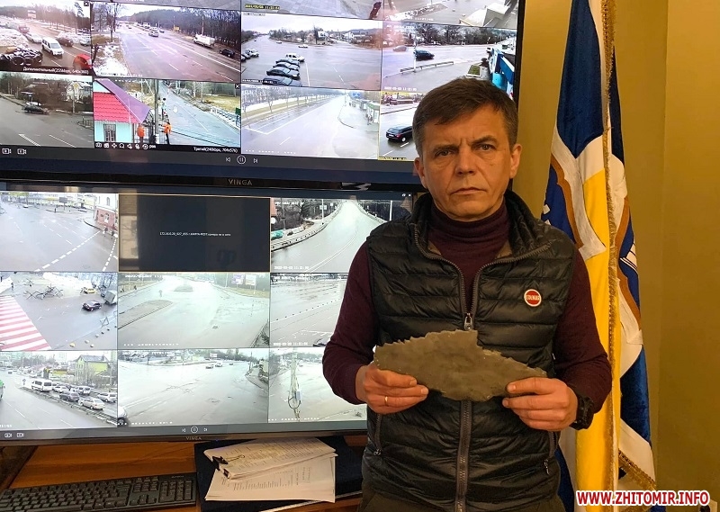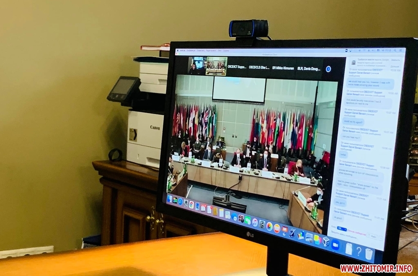 Житомирський міський голова Сергій Сухомлин 3 березня за допомогою інтернет-зв’язку виступив на засіданні ОБСЄ. Мер показав уламок бомби, що влучила в житлові будинки Житомира.