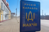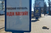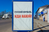 Одні вшановують полеглих героїв та героїв живих. Інші закликають зберігати спокій та довіряти тільки перевіреній інформації. Деякі цитують відому фразу, посилаючи у далеку прогулянку. Є на бордах і цитати Шевченка, і "Слава Україні" і попередження, що замість квітів на російських солдатів тут чекають кулі.