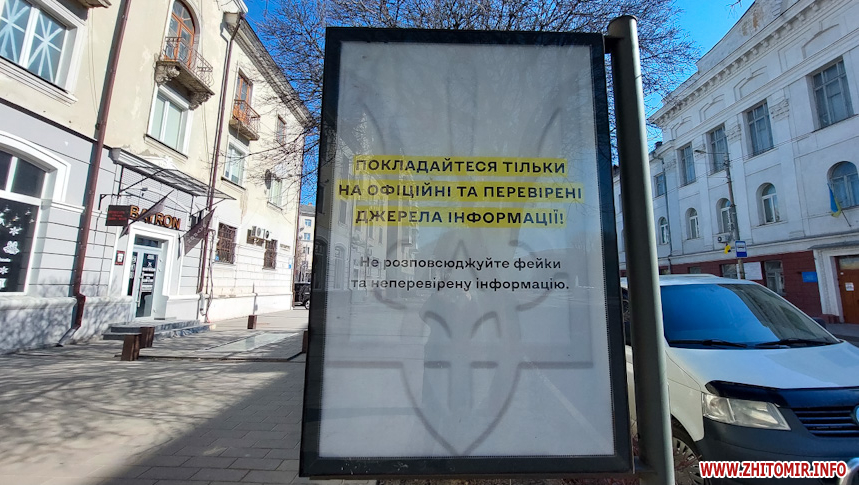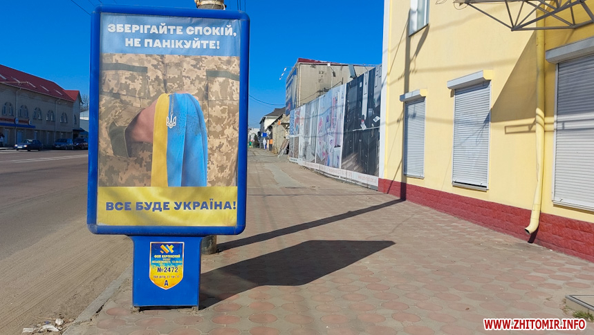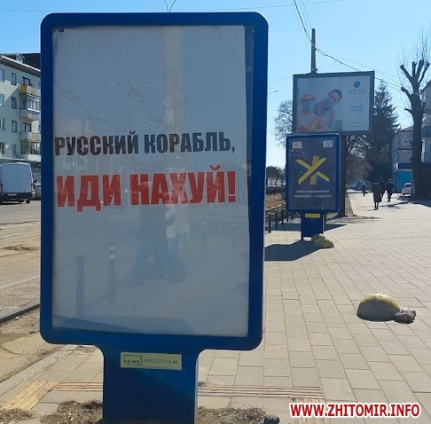 Як повідомляв Житомир.info, 28 лютого у Житомирі з’явилися білборди з крилатою фразою прикордонників, а фото підготовки міста до оборони опублікували європейські видання.