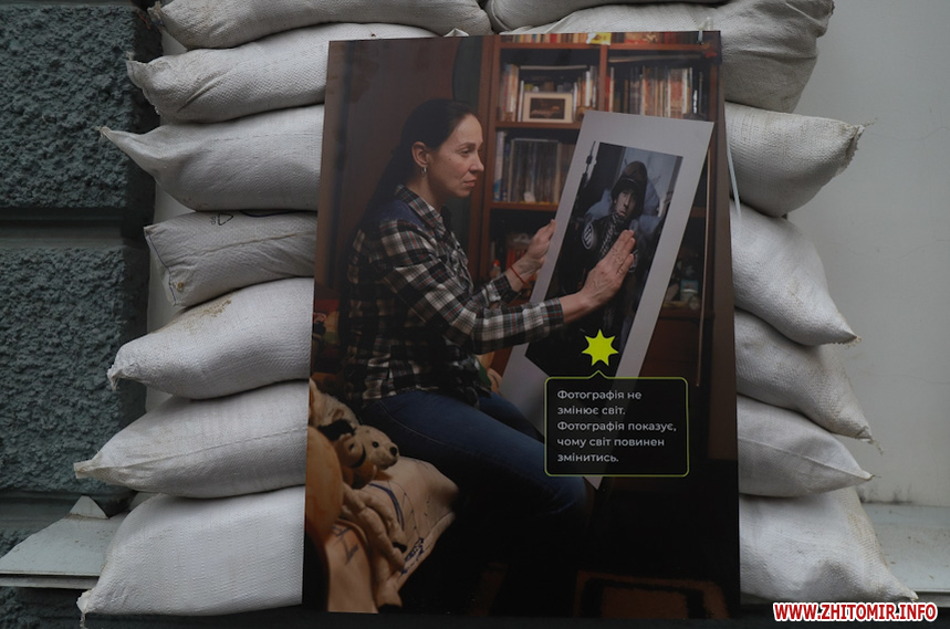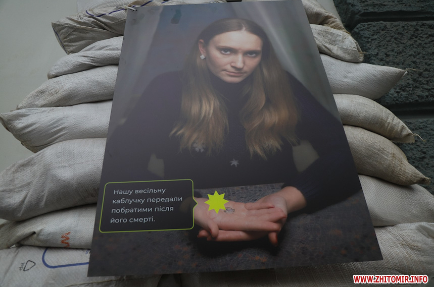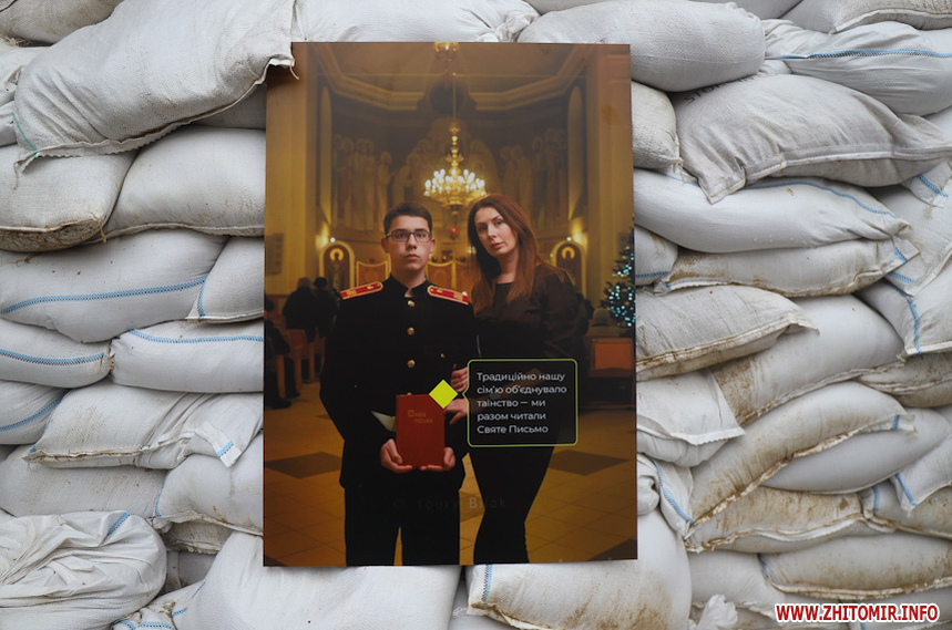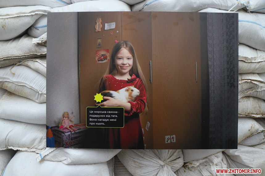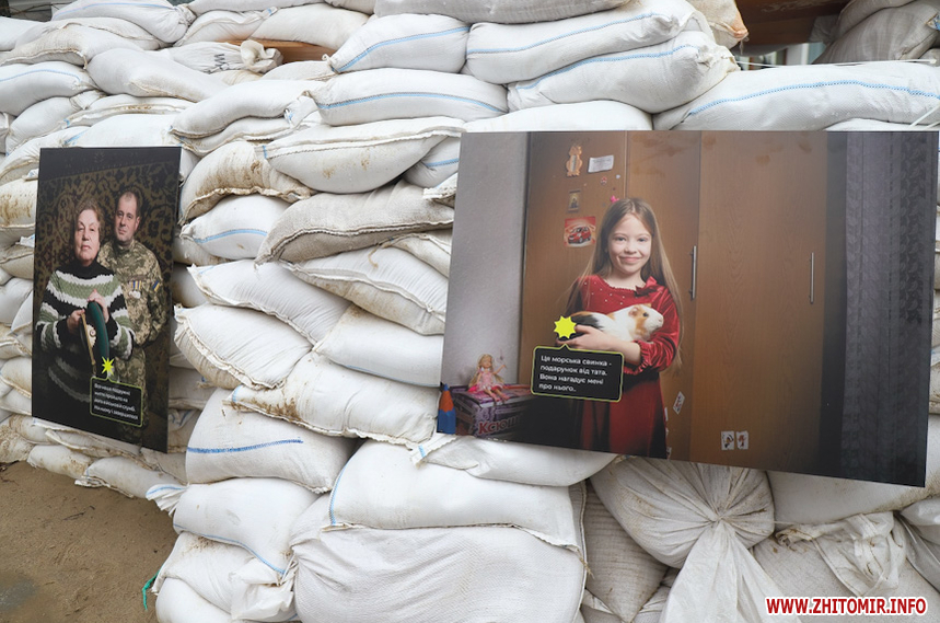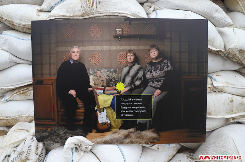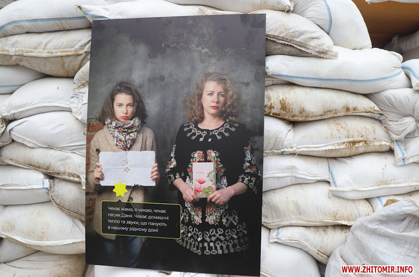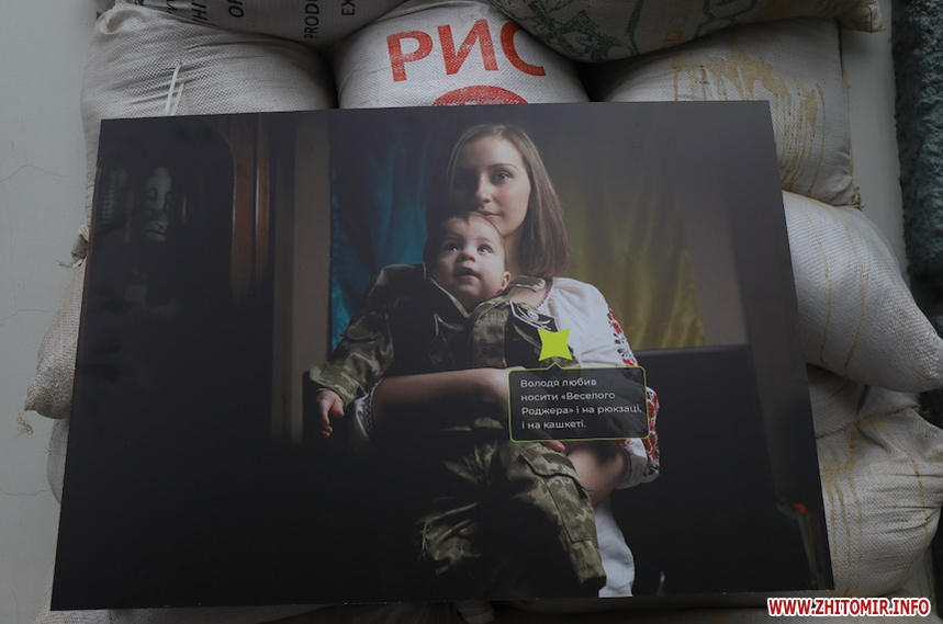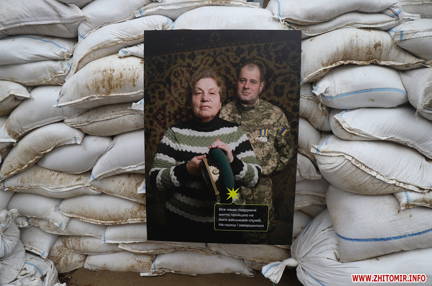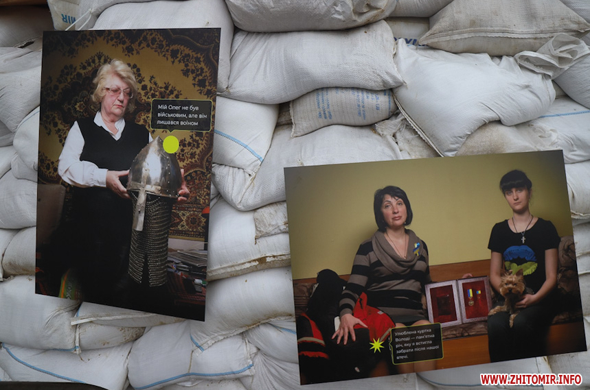 «Захар Маковський збирався відкрити виставку у середині березня, проте через повномасштабне вторгнення відкриття перенесли на невизначений термін. Коли ми дізналися про поранення Захара, вирішили підтримати його та відкрити виставку без нього. На жаль, анотація до виставки поки недоступна, тож вказати авторство ми зараз не можемо, але докладаємо зусиль, щоб відновити інформацію. Тут представлено 12 світлин, де зображені родичі воїнів, загиблих на Донбасі. На світлинах також пам'ятні речі загиблих та їх короткі історії. Символічно, ми розмістили світлини на одному з укріплень нашого міста», - розповів волонтер Ілля Грицанюк.