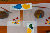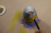 Фарба, якою розписували яйця, – харчова, на основі какао-масла. Вона швидко застигала, тож її розігрівали спеціальним феном.